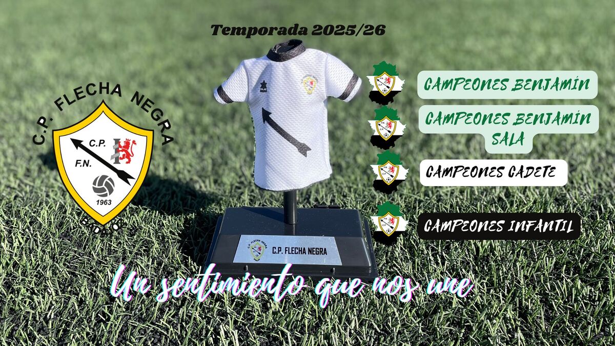 El CP Flecha Negra es un club de fútbol base radicado en la ciudad de Badajoz, con equipos que van desde nuestros zagalines de 3 años hasta nuestros juveniles de 18.